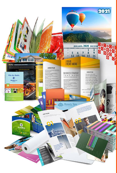 Печатная продукция высокого качества цветопередачи, многообразие видов и форматов бумаги, пленок и новых современных типов нанесения.